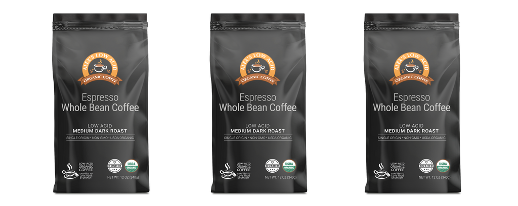 Alex's Low Acid Organic Coffee™ - Espresso Whole Bean (12oz)
