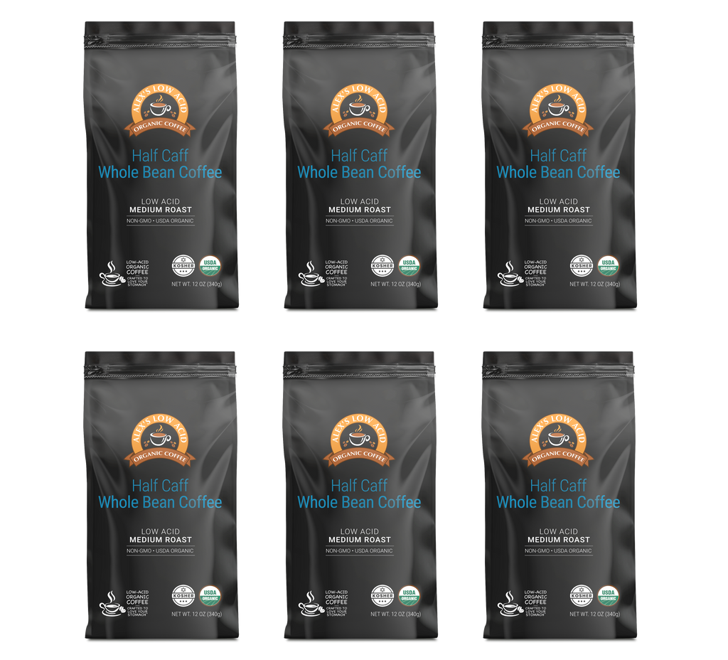 Alex's Low Acid Organic Coffee™ - Half Caff Whole Bean (12oz)