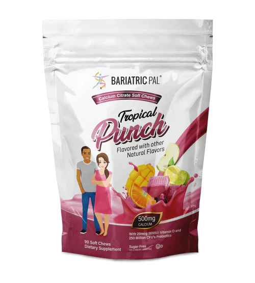 11. 1 Bag of BariatricPal Sugar-Free Calcium Citrate Soft Chews 500mg with Probiotics - Tropical Punch  (90 Chews)