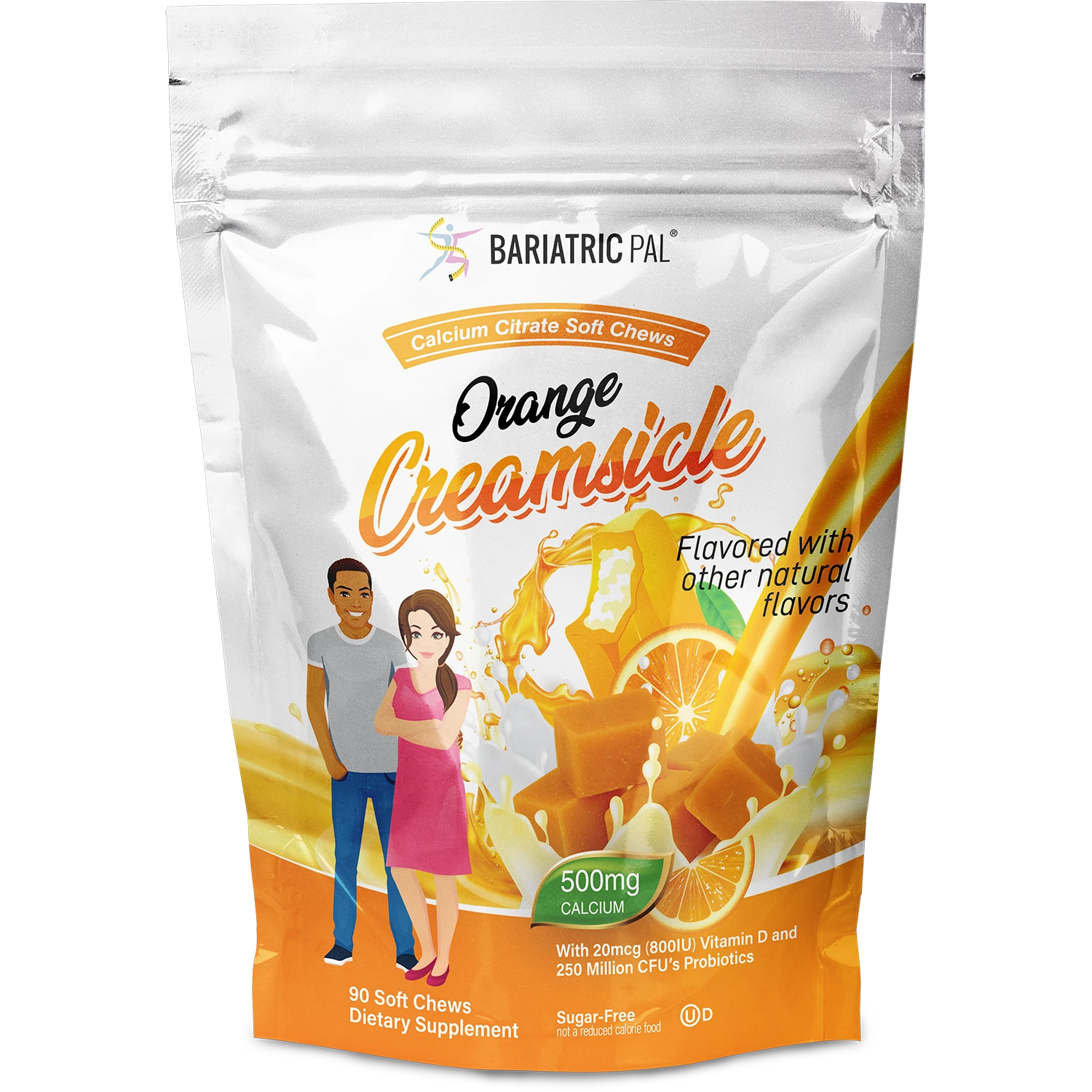2. 1 Bag of BariatricPal Sugar-Free Calcium Citrate Soft Chews 500mg with Probiotics - Orange Creamsicle (90 Chews)