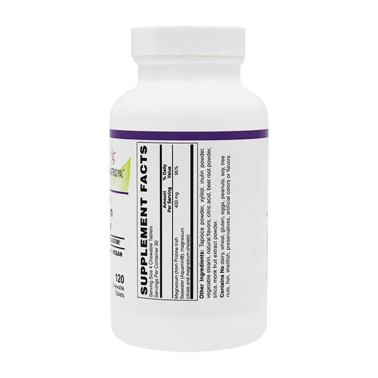 - Triple Magnesium Source: Each chewable tablet delivers 100mg of magnesium derived from three potent sources - Aquamin®, magnesium citrate, and magnesium chelate, ensuring comprehensive magnesium support for your body's vital functions.