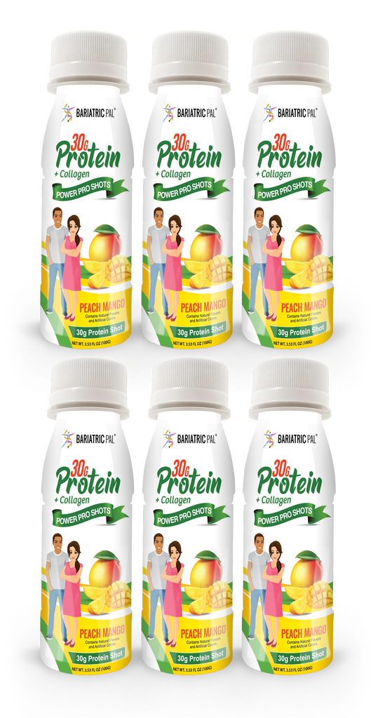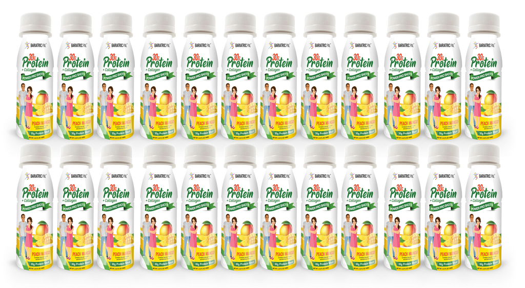Whether it's accompanying your morning routine, serving as an afternoon delight, or replenishing you post-workout, the Peach Mango BariatricPal 30g Whey Protein & Collagen Power Pro Shots are a delicious way to get your protein and collagen in one flavorful, convenient package.