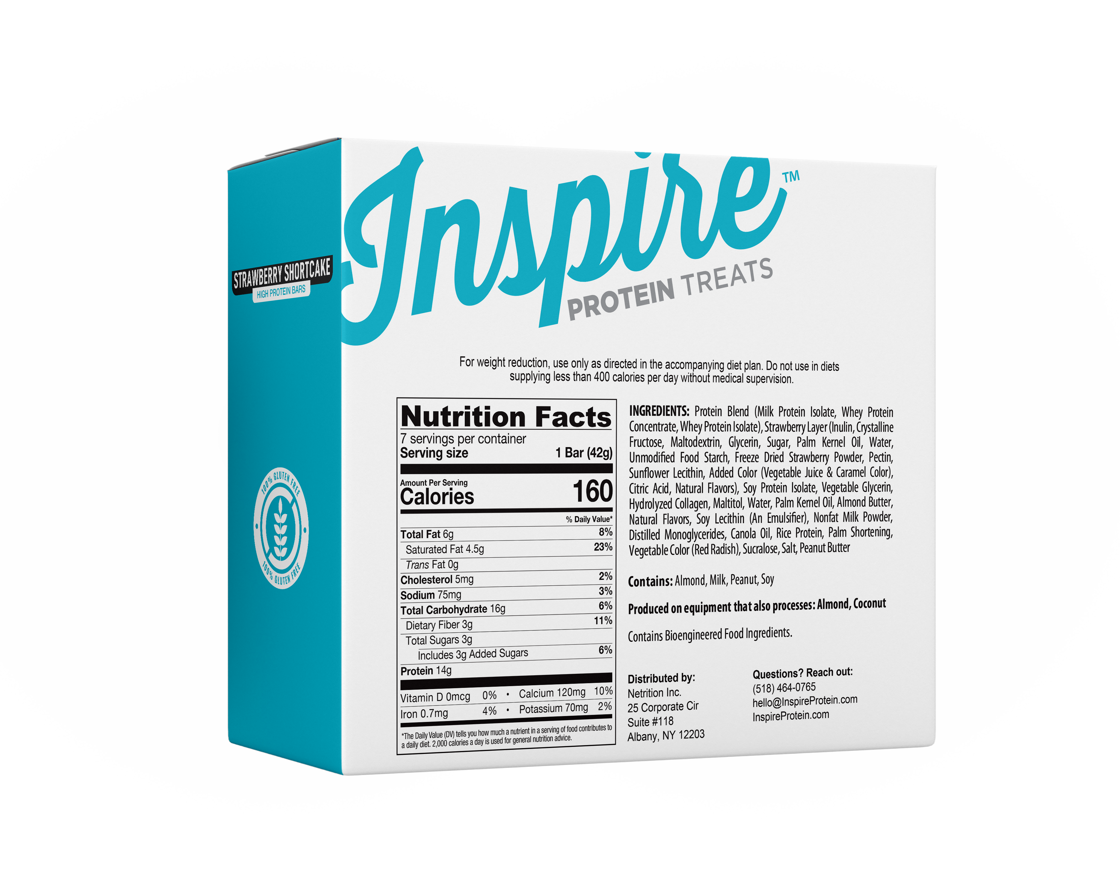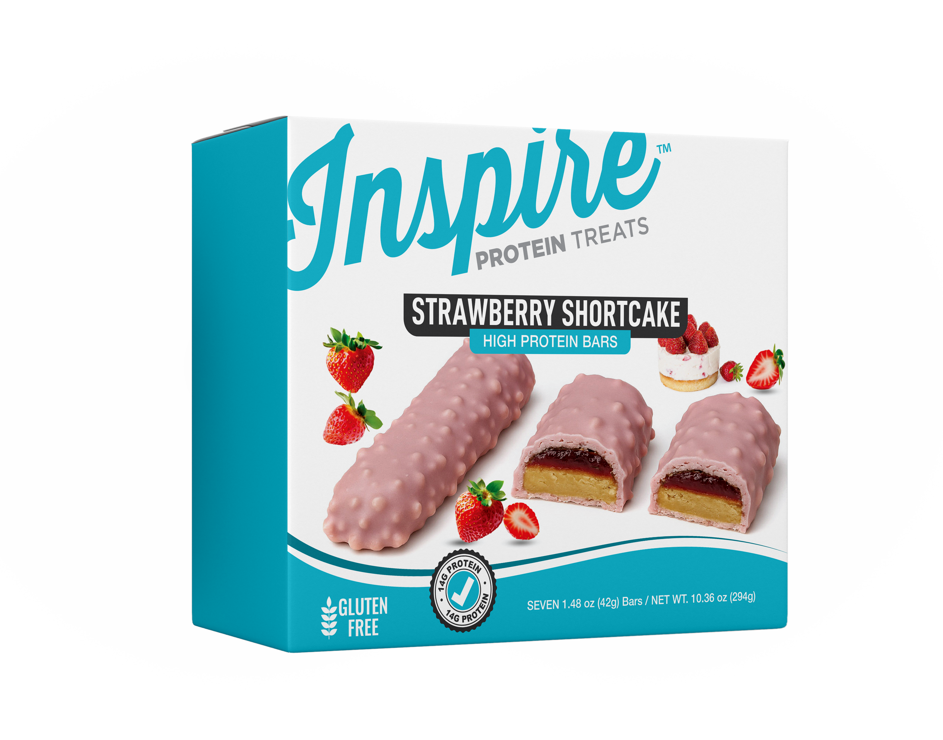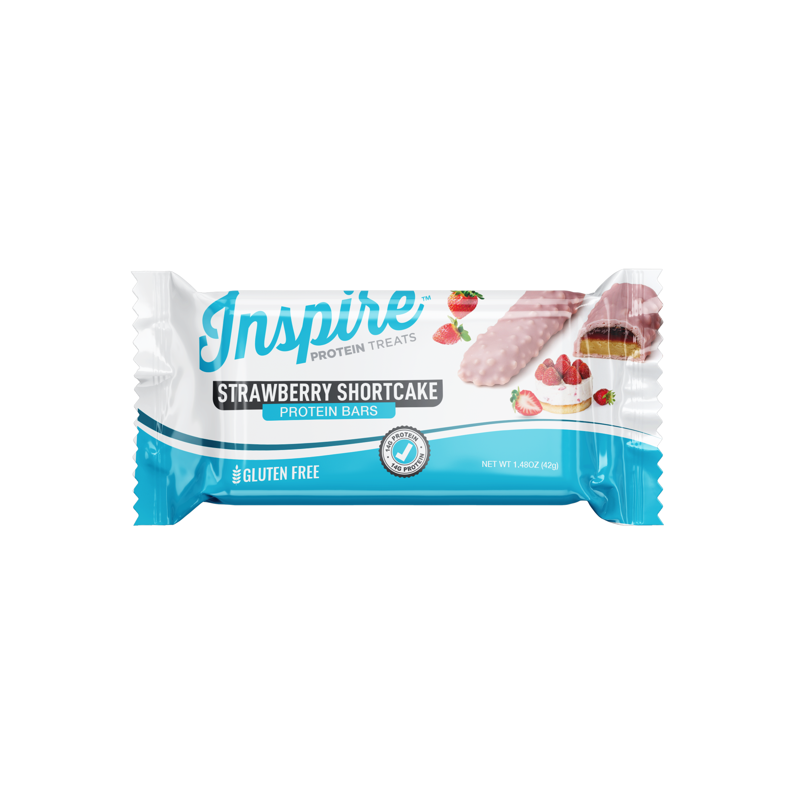 Inspire Strawberry Shortcake Protein Bars deliver 14 grams of high-quality protein and only 160 calories. Sweet enough to crush a craving. Clean enough to feel good about.