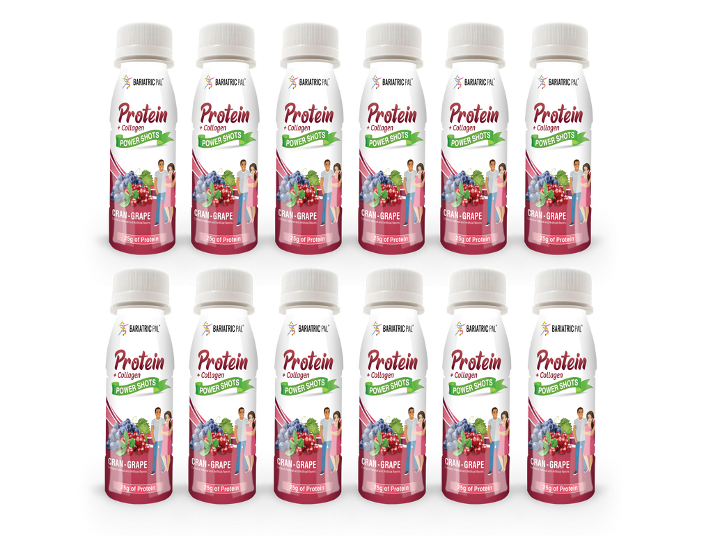 Introducing BariatricPal 25g Whey & Collagen Complete Protein Power Shots in Cran Grape flavor – an enhanced version of our popular 15g shots, offering a substantial 25 grams of complete protein in the same convenient 3.0 oz size. It is ideal for active individuals, post-bariatric surgery nutritional needs, or anyone seeking a significant protein boost in a compact and delicious format.