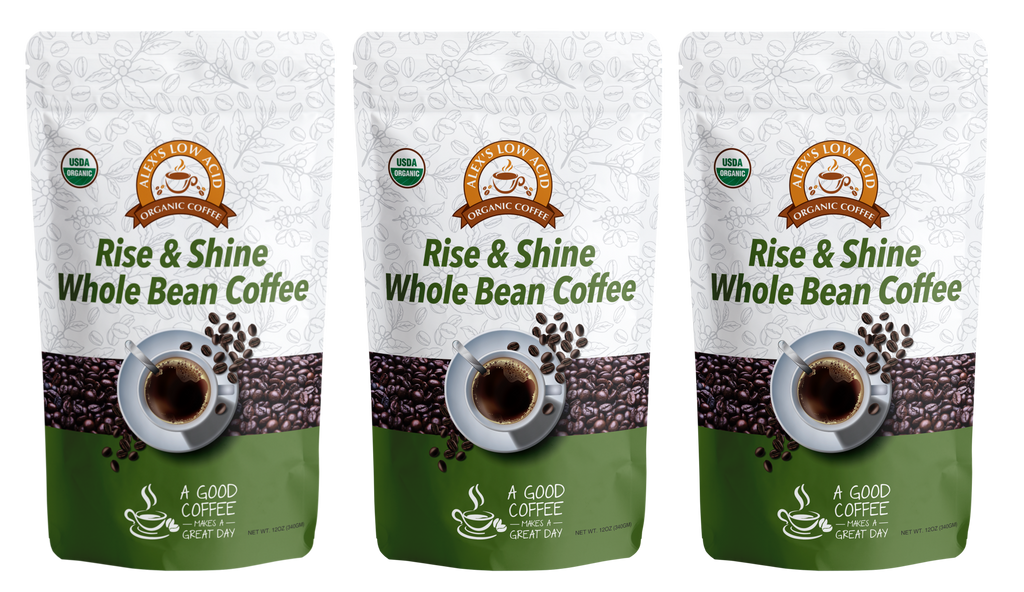 Alex's Low Acid Organic Coffee™ - Rise and Shine Whole Bean (12oz)