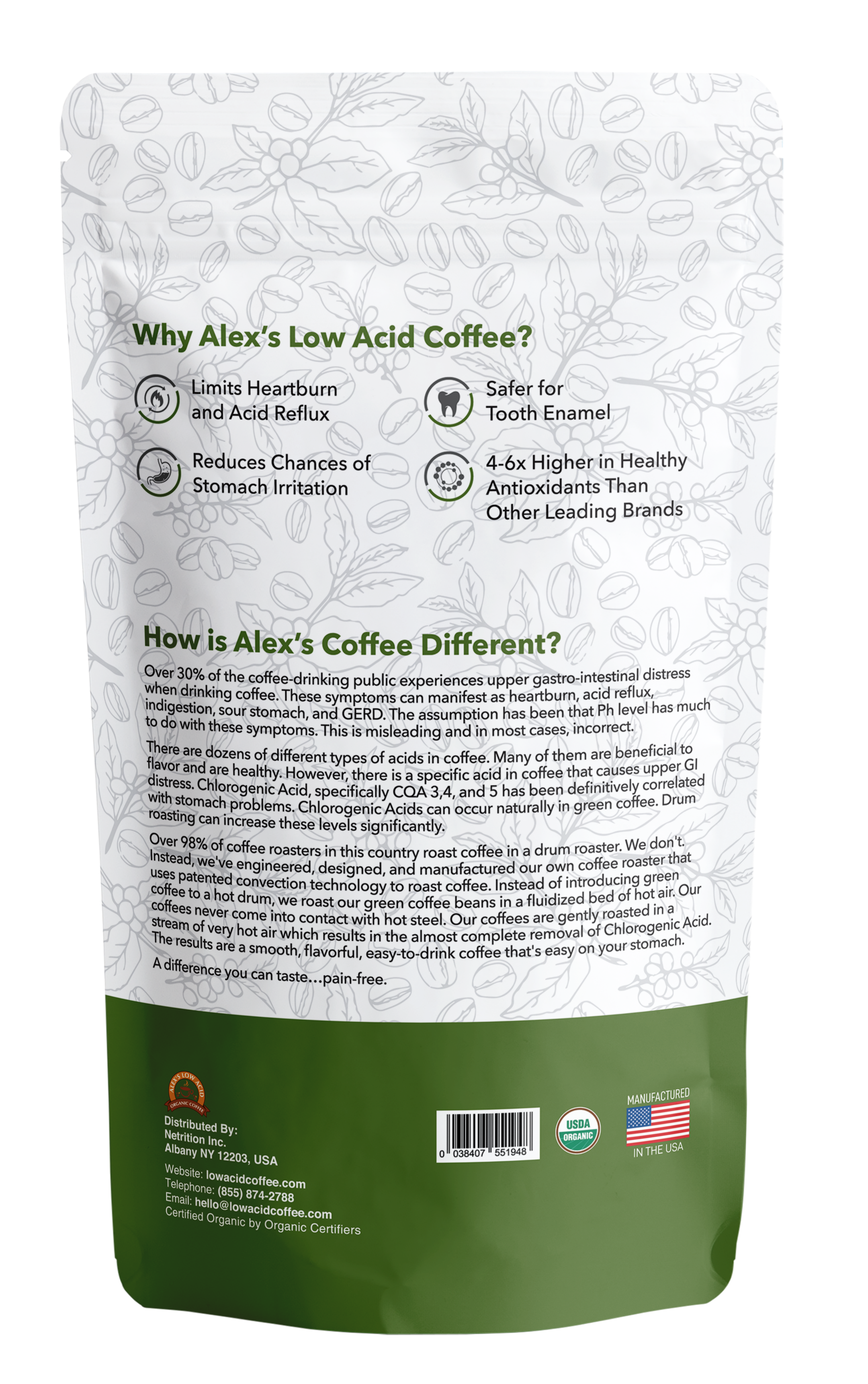 Do you love coffee, but cannot handle the acid? After weight loss surgery, when you have heartburn, or simply in the evening before bed, a cup of Alex's Low Acid Organic Coffee™ can be warming and satisfying without causing the least bit of discomfort! 100% satisfaction guaranteed!!