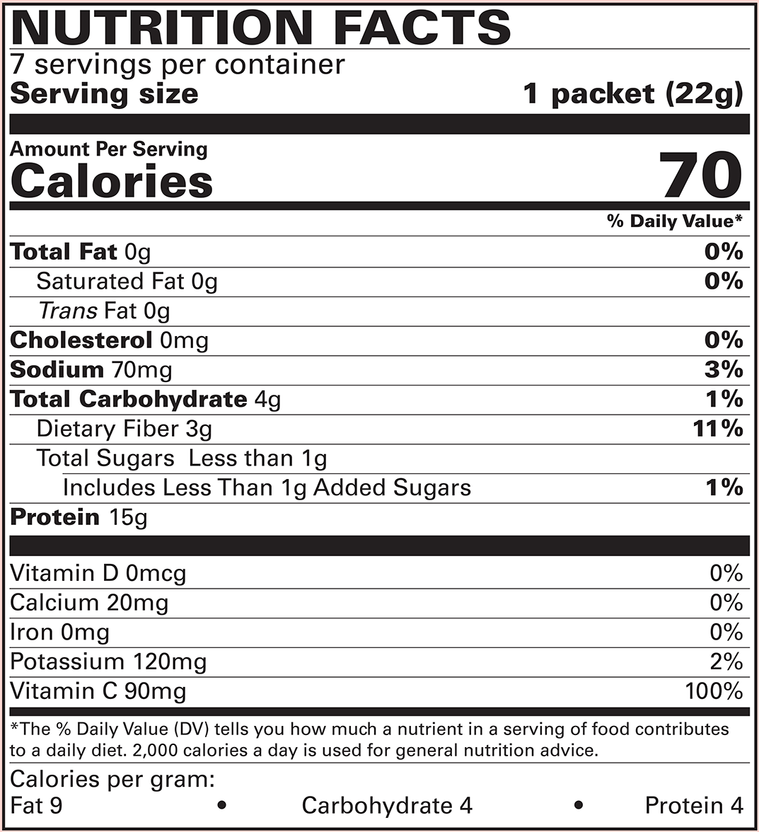 This fruity drink contains 3g of dietary fiber to support digestion and curb hunger, plus 90mg of Vitamin C—delivering 100% of your daily value for immune support.