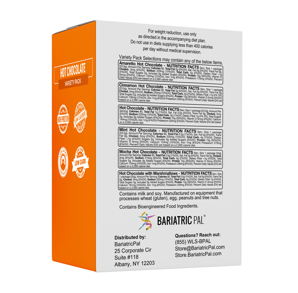 Who doesn’t love a good cup of hot chocolate in the morning, evening, or in between? The BariatricPal Hot Chocolate Protein Drink Variety Pack is your chance to taste five or six* popular gourmet flavors.