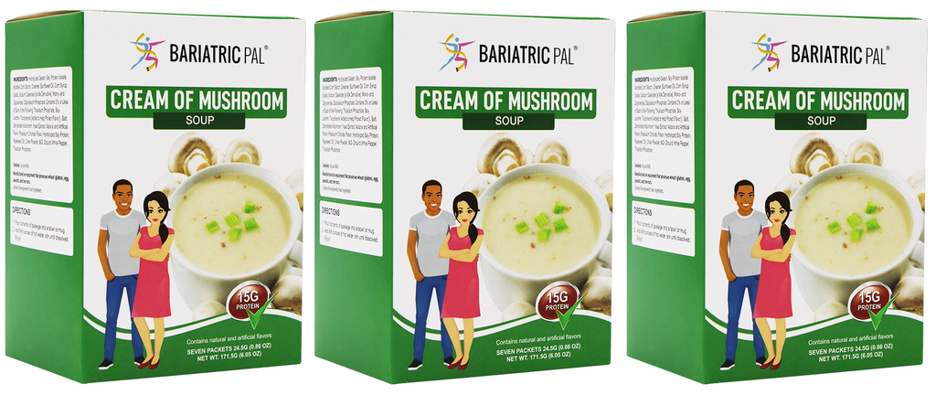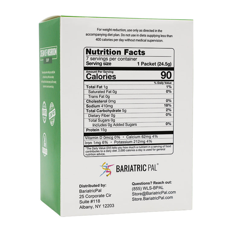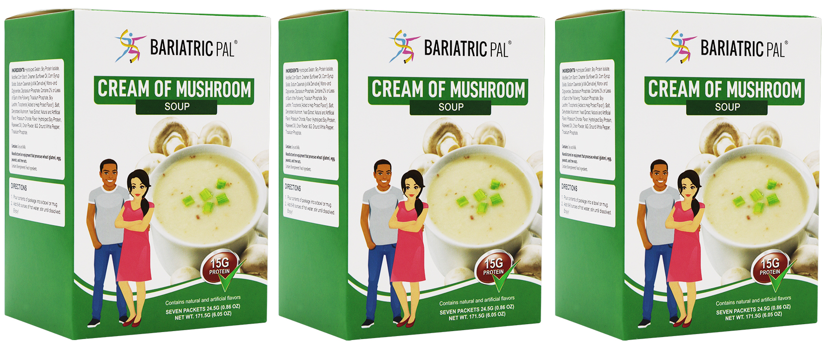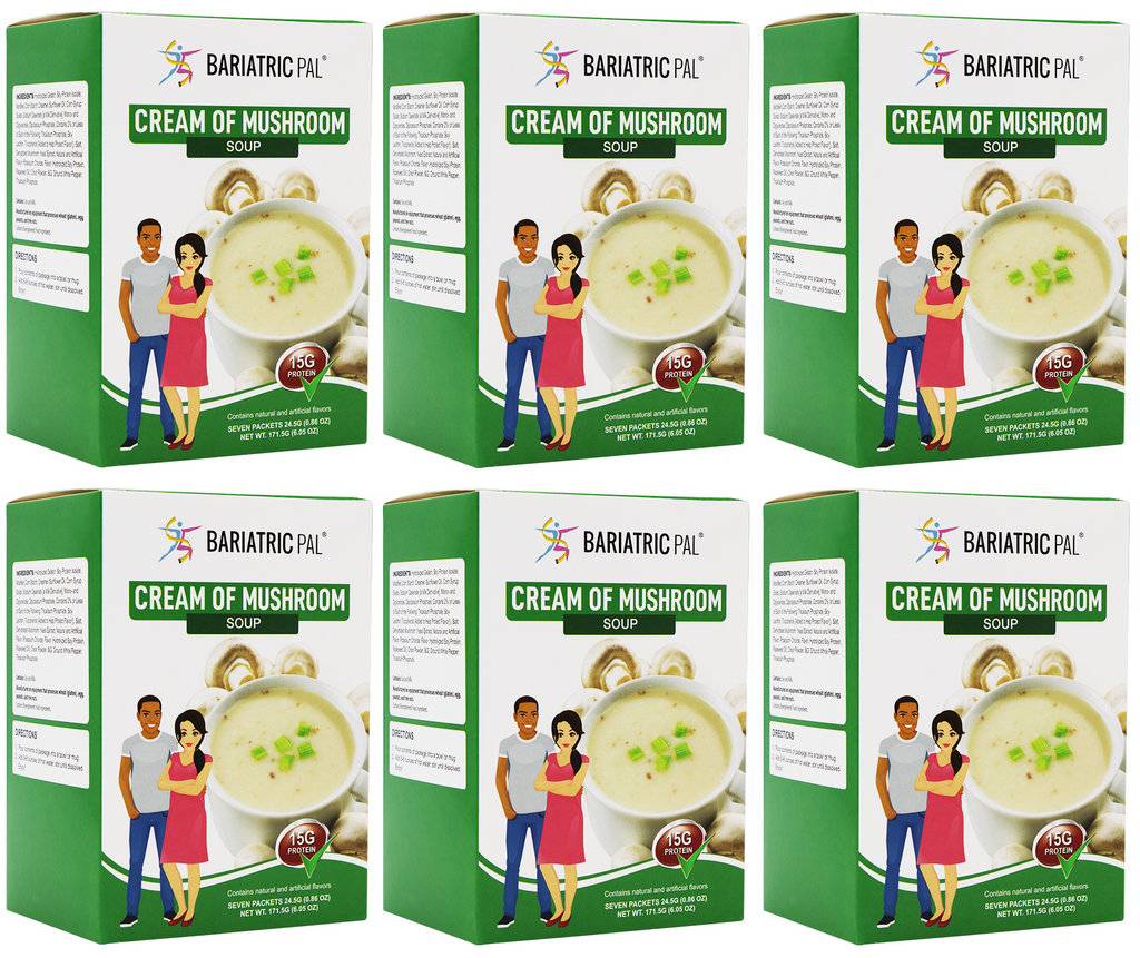 BariatricPal Protein Soup is your mealtime solution. Just add water and enjoy your instant high-protein soup. BariatricPal Protein Soup – Cream of Mushroom has real mushrooms and a creamy taste, but only 90 calories. It can make you feel better pre-op and post-op while giving you the protein you need. 7 packets per box.