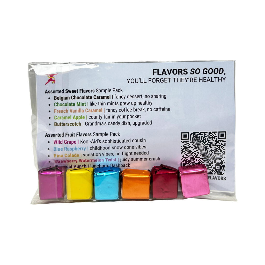Assorted Sweet Flavors Sample Pack includes the following flavors: