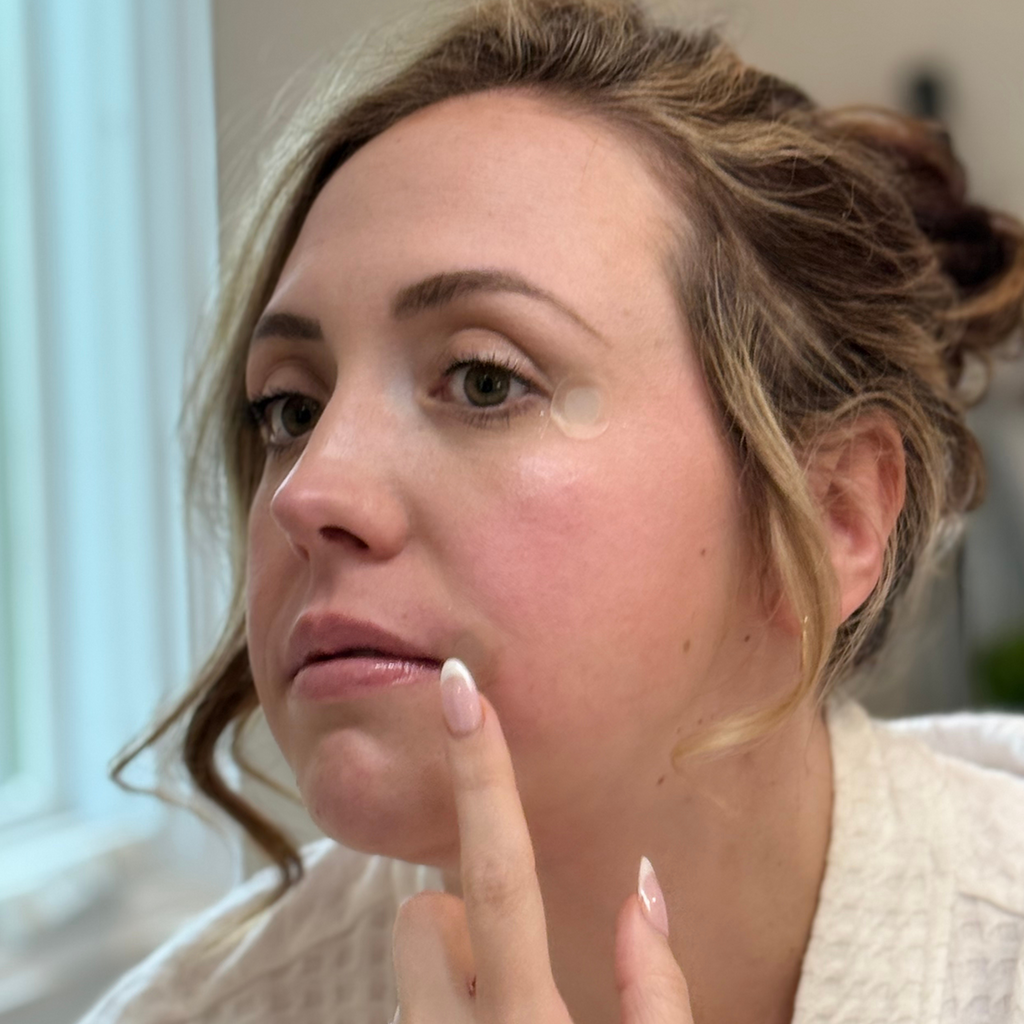 - Apply the patch over the blemish and press for a few seconds to activate the microneedles.