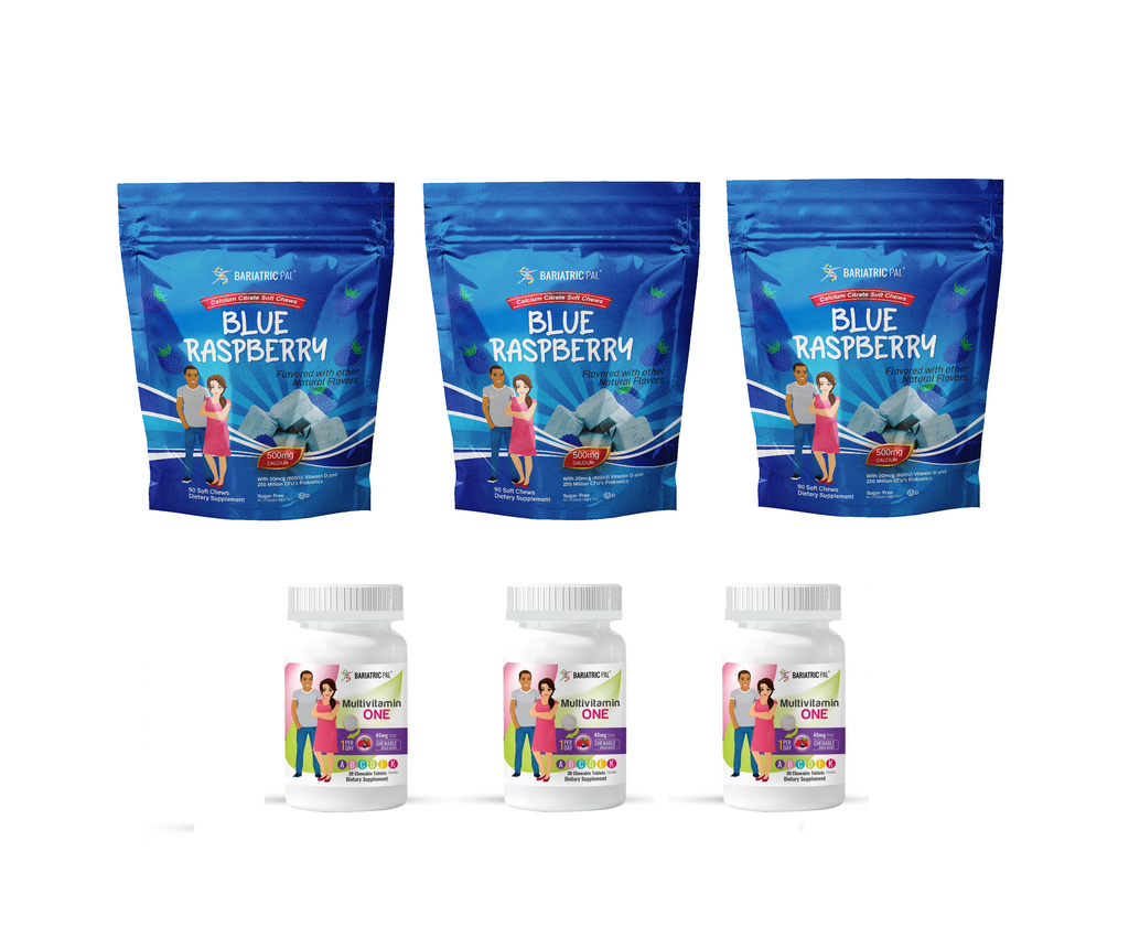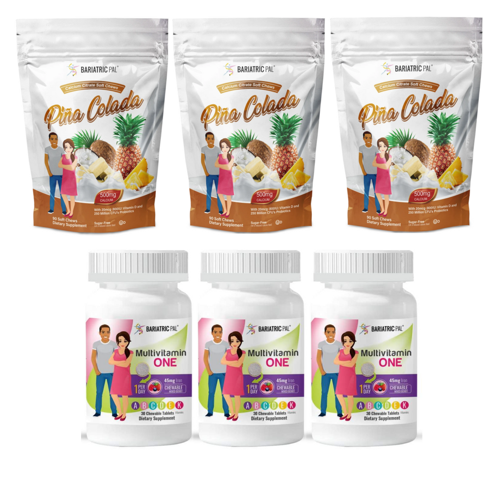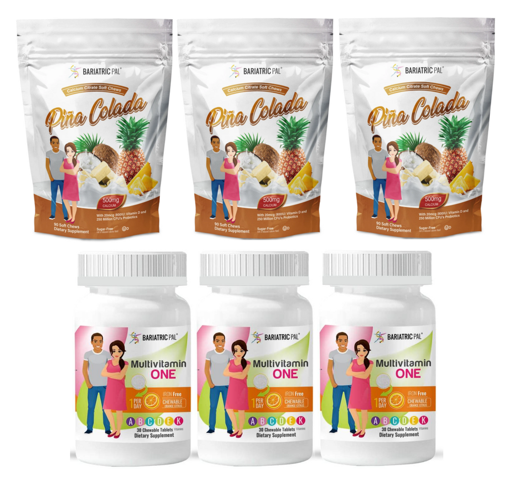 - A choice of BariatricPal Calcium French Vanilla Caramel Probiotic Soft Chews or BariatricPal Calcium Citrate Soft Chews with Probiotics - Strawberry Watermelon Twist or BariatricPal Sugar-Free Calcium Citrate Soft Chews with Probiotics - Belgian Chocolate Caramel or BariatricPal Sugar-Free Calcium Citrate Soft Chews with Probiotics - Wild Grape or BariatricPal Multivitamin ONE "1 per Day!" Bariatric Multivitamin Chewable & IRON-FREE - Orange Citrus or BariatricPal Sugar-Free Calcium Citrate Soft Chews 500mg with Probiotics - Caramel Apple or BariatricPal Sugar-Free Calcium Citrate Soft Chews 500mg with Probiotics - Orange Creamsicle or BariatricPal Sugar-Free Calcium Citrate Soft Chews 500mg with Probiotics - Piña Colada or BariatricPal Sugar-Free Calcium Citrate Soft Chews 500mg with Probiotics - Chocolate Mint or BariatricPal Sugar-Free Calcium Citrate Soft Chews 500mg with Probiotics - Blue Raspberry (NEW!)