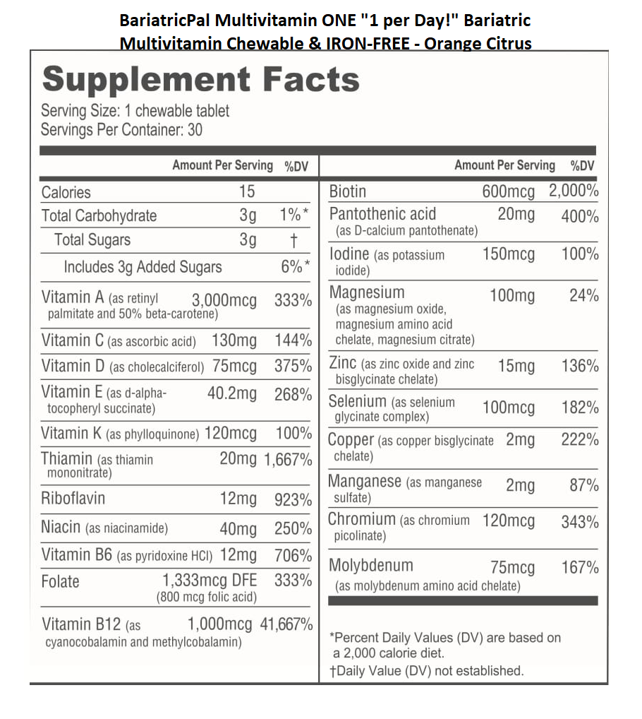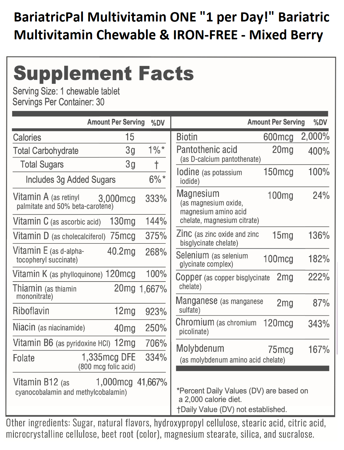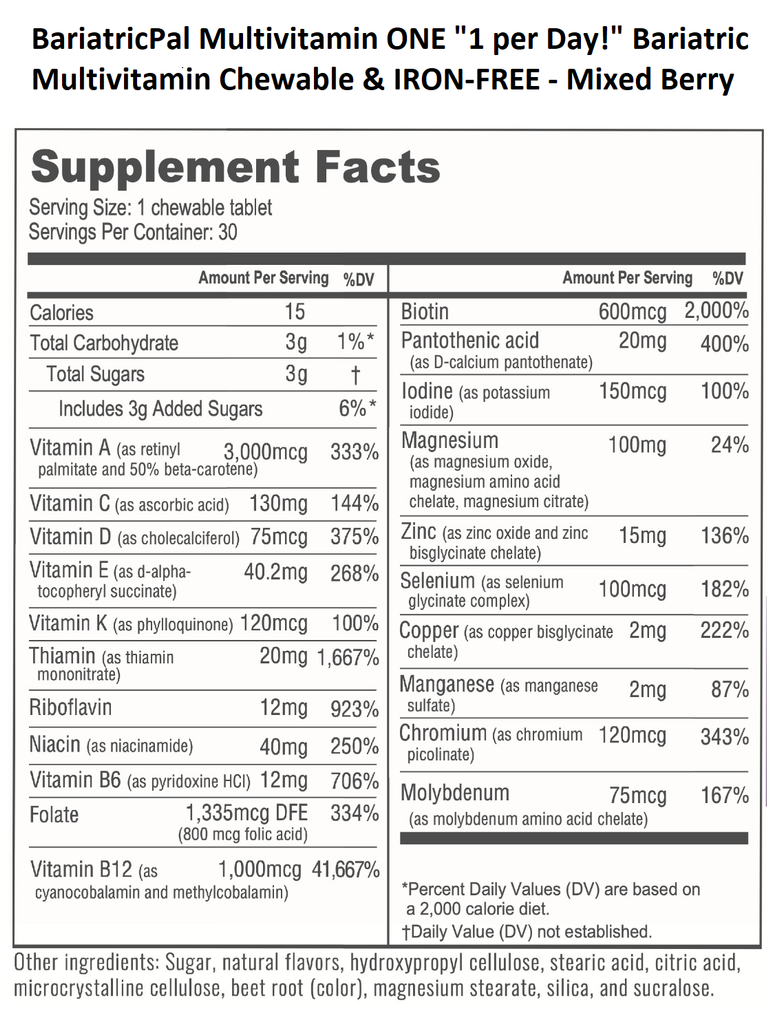 The Gastric Bypass Complete Bariatric Bariatric Vitamin Pack by BariatricPal has: