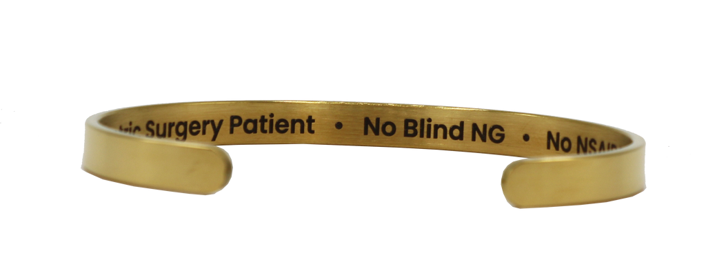 - Medical alert bracelet explicitly designed for gastric surgery patients