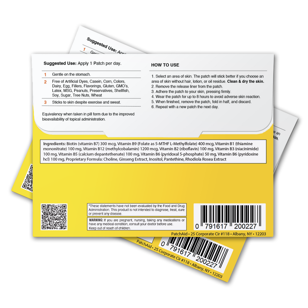 Please Note: Nutritional patches are a new technology. As with any nutritional supplements, consumers should use nutrition patches according to their healthcare providers' recommendations and regularly monitor nutrient levels through lab work as they would when taking any dietary supplements.