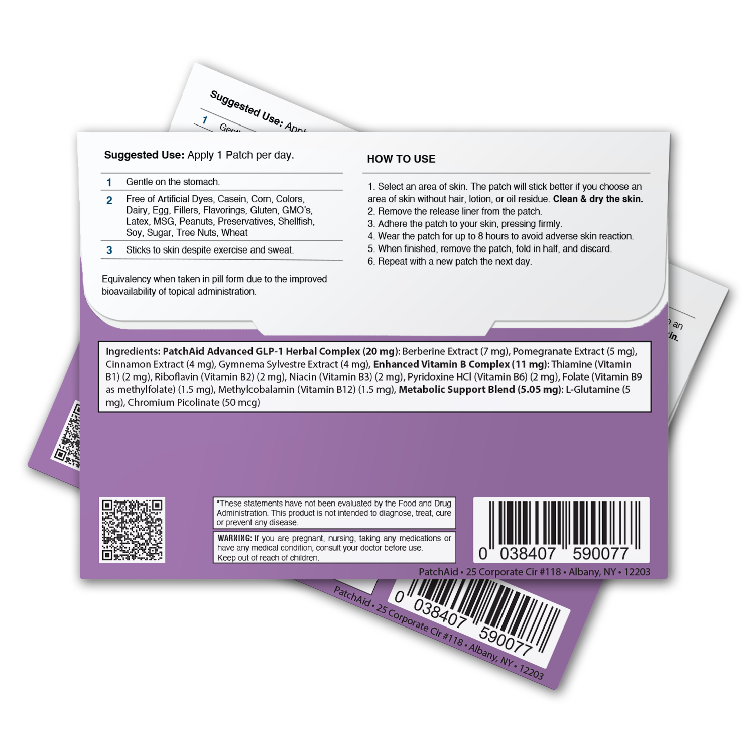 The Food and Drug Administration has not evaluated these statements. The GLP-1 Support Patch Pack by PatchAid is not intended to diagnose, treat, cure or prevent any disease. Anyone with a medical condition should seek the advice of a licensed medical practitioner. Individual results may vary.
