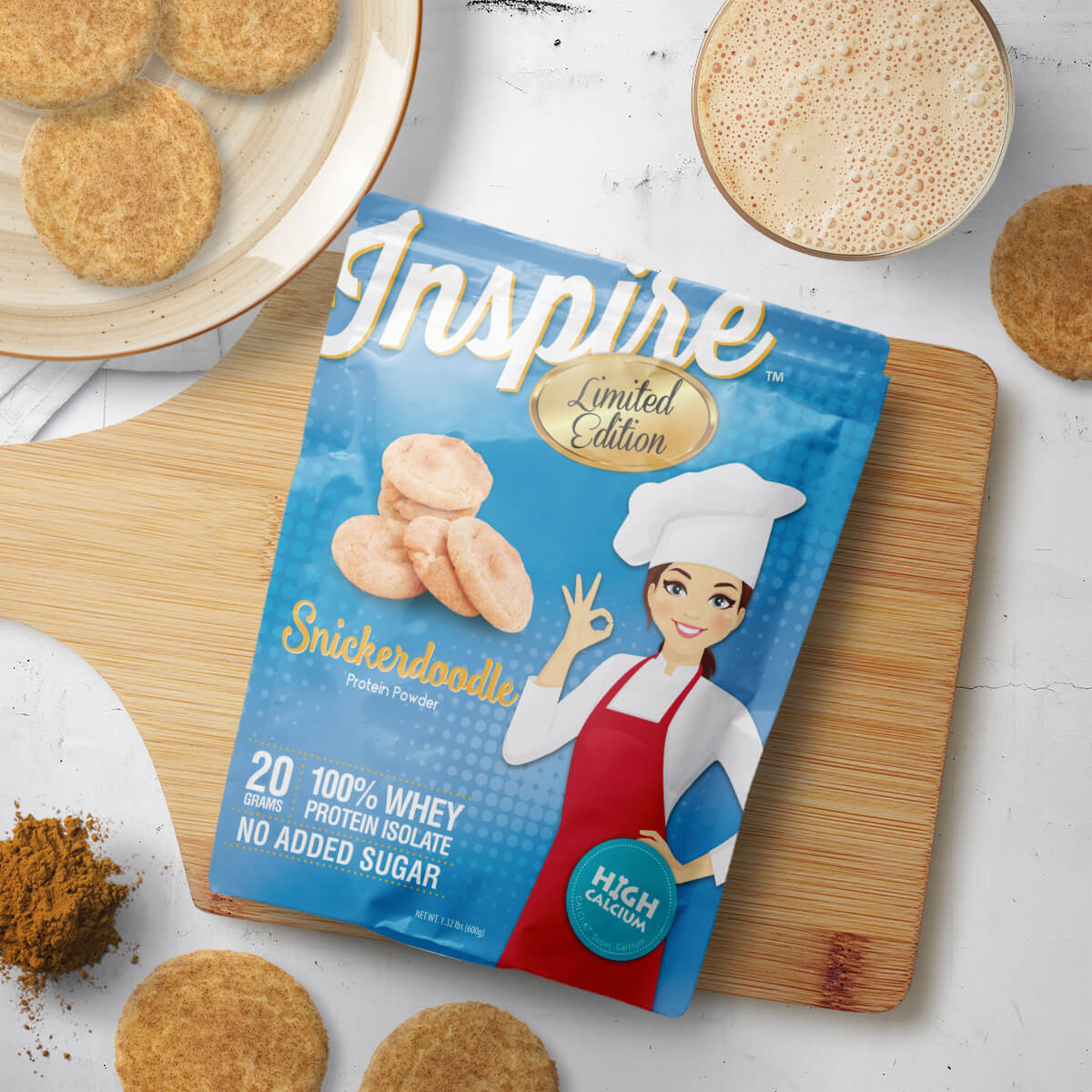 Inspire Snickerdoodle melts into a protein drink that tastes like a plate of favorite home baked cookies, you can taste the vanilla, butter and cinnamon. We start with pure sweet clean whey protein isolate so those warm cookie flavors shine. You won't believe this is protein. Inspire is made for the bariatric pouch - a small thin smooth drink you blend in a glass using just a spoon.
